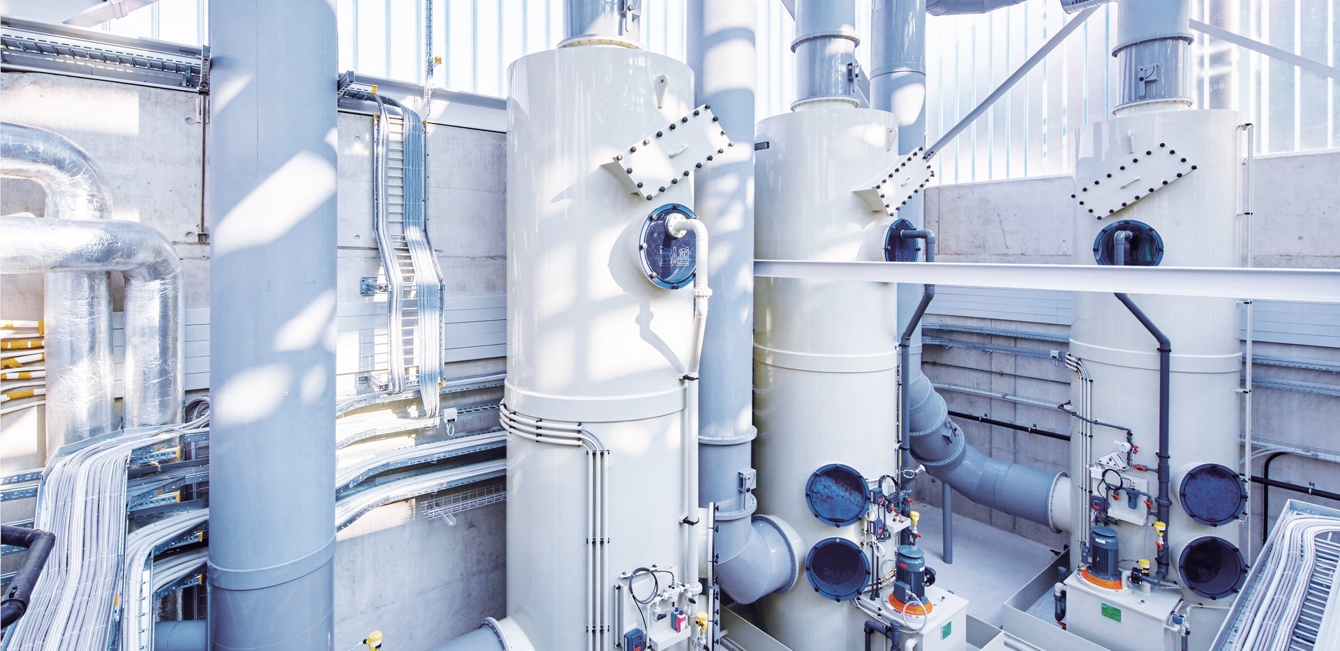 We leveren complete systemen voor milieutechnologie met procesontwerp, engineering en 3D-planning, maar ook afzonderlijke componenten zoals luchtwassers, druppelafscheiders, ventilatoren, ventilatiecomponenten en regelsystemen